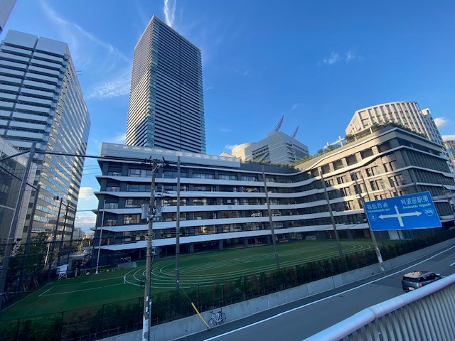 さらに進むと高層マンションの近くに昨年開校した中之島小中一貫校があります。オフィス街の中に暮らしを感じます。