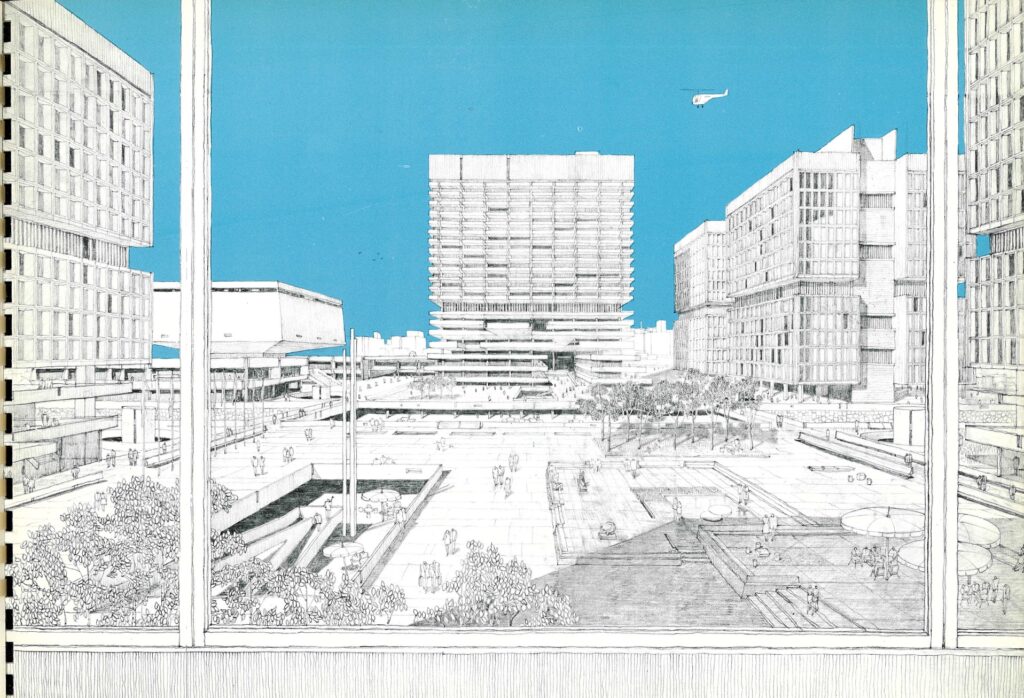 1963年「中之島再開発計画」敷地中央の広場パース