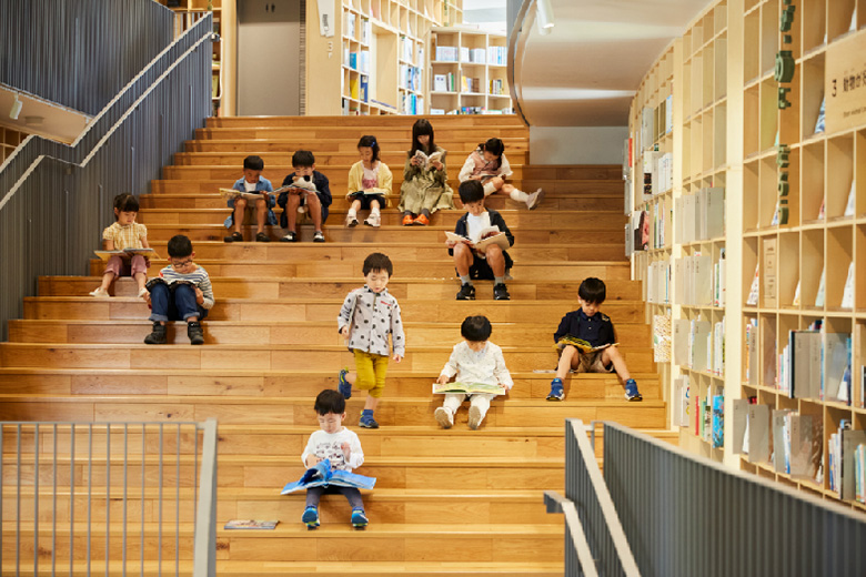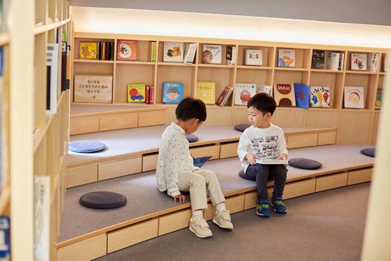 「この施設、実は図書館ではないんですよ。こどもたちが好きな場所で、自由に本が読めるように、この施設は図書館ではなく文化施設として運営しています。図書館だとちゃんと座って静かに本を読まないといけないじゃないですか。でも、文化施設なら、声に出して本を読んだり、親御さんが読み聞かせもできます。だから土・日は小さなお子さん連れのご家族が多いですね」